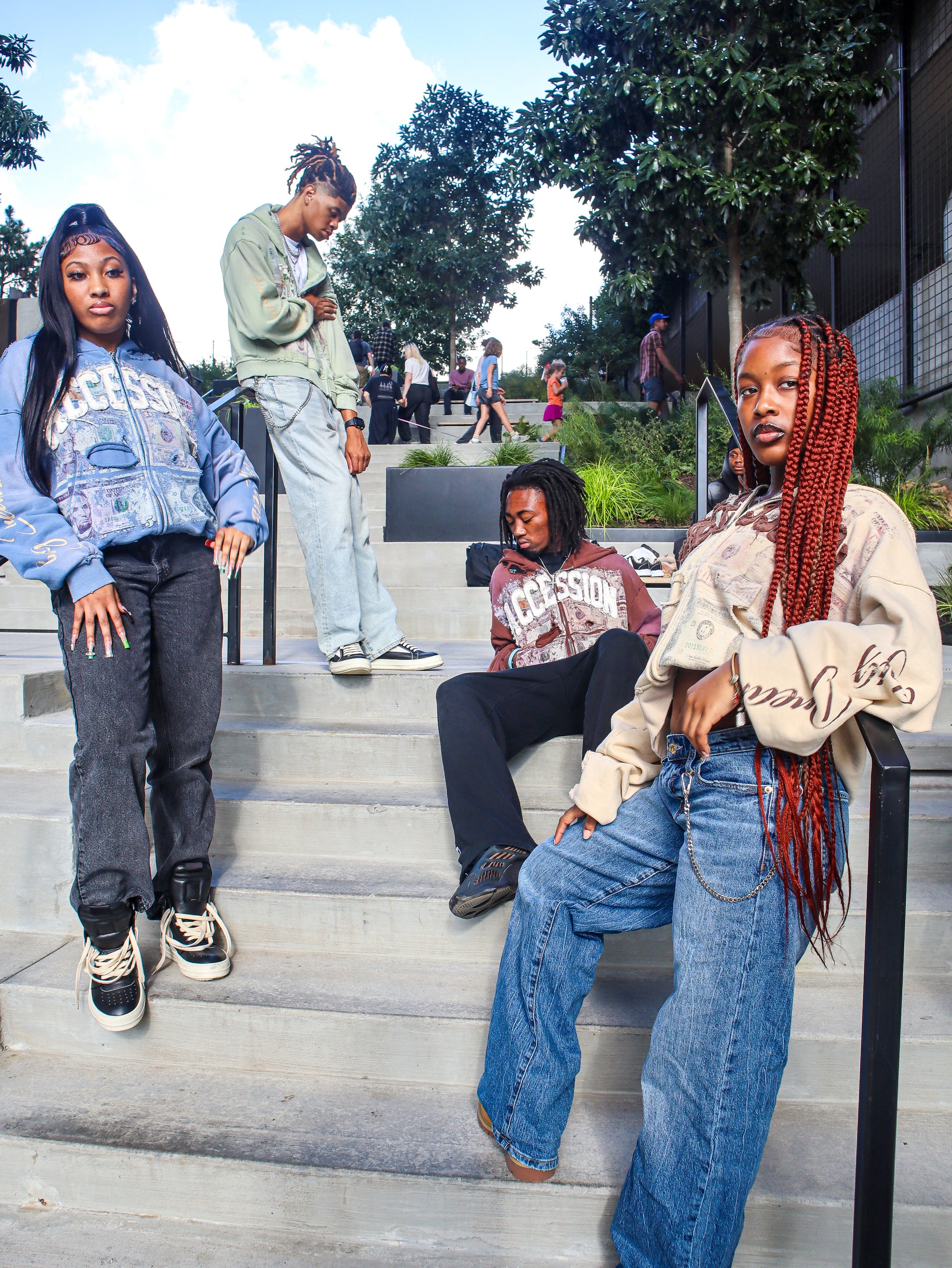 Embellishments: Distressed embroidery reading Accession across the front + “Big Dreams” Screen print down each sleeve